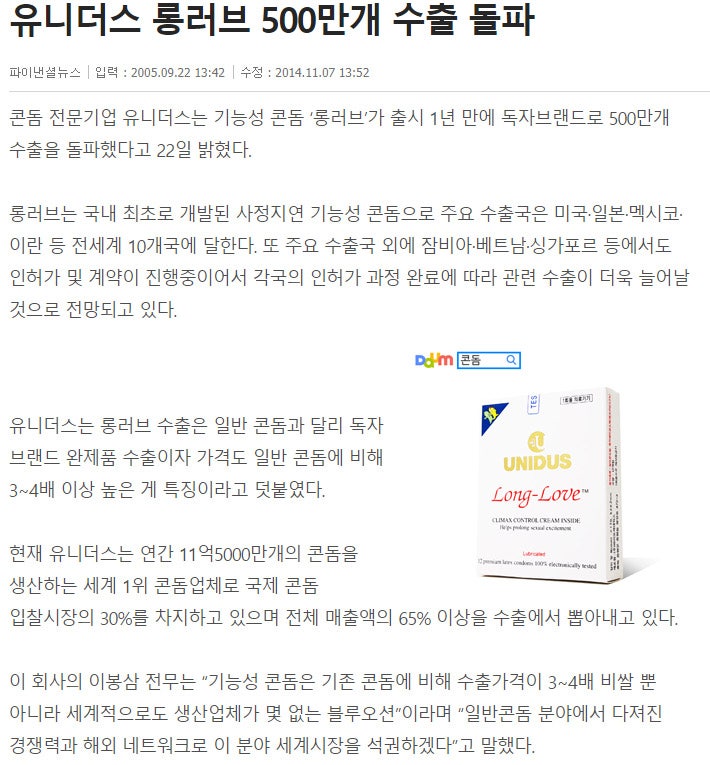 유니더스 롱러브는 2000년대 초반까지 다른 이름으로 판매하다가 2004년 말 본격적으로 ‘롱러브’ 이름으로 정식 판매되었습니다.